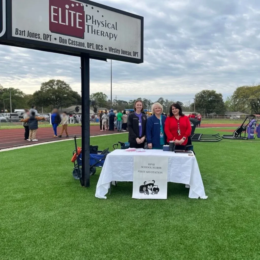 Although Elite Physical Therapy has served schools across Rapides Parish in central Louisiana for more than 20 years, the relationship they have now with Alexandria Senior High School began after a couple of their PTs, including Bart Jones, Elite Physical Therapy’s CEO, started to focus their attention on the school more. Wanting to switch up his daily routine, Marcus felt called to work with athletes, and with the established relationship between Elite Physical Therapy and Alexandria Senior High School, helping fellow PTs with their duties seemed like the perfect way to branch out. Marcus became involved on the sidelines of the football field in 2019 alongside Bart, but after gaining more experience, he’s been able to hold the fort down on his own since 2020.